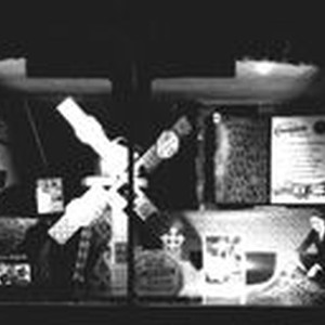 Photo--black and white: The Starr Furniture store on Main Street Sebastopol seen from the outside looking into the store window. The display is of Congoleum floor coverings and a man is to the right showing the flooring. Circa 1920s-30's. The store was located where present day (2009) Copperfield's Book is located.