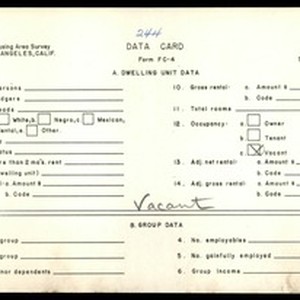 WPA Low income housing area survey data card 244, serial 37171, vacant
