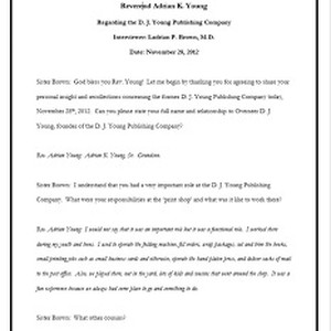 Transcript of interview of Adrian K. Young by Ladrian P. Brown, 28 Nov. 2012. [Description English/roman)]