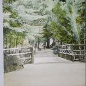 Photo--color: Photo of old postcard: Caption: Foot bridge, Eaglenest, Guerneville, Cal" 1911,