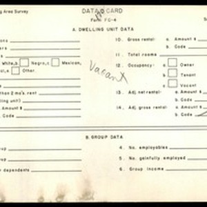 WPA Low income housing area survey data card 170, serial 27121, vacant