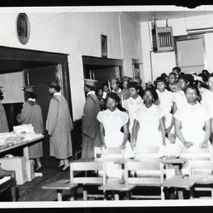 Photograph of Saints Industrial School Faith hall graduation ceremony, Lexington, Mississippi, [s.d.]. [Description English/roman)]