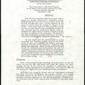 1986 September 2-3. Part of: Paul B. MacCready Papers ca. 1930-2002. Series 4: Writings and publications; Subseries 2: Talks; Box 10, Folder 2 Full Title: Motivation for innovation: Interactions between goals, rules, technology and economics, World Congress on the Medical and Scientific Aspects of Cycling (Colorado Springs, CO)
