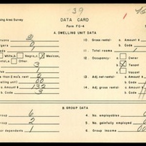 Text / WPA Low income housing area survey data card 39, serial 10651