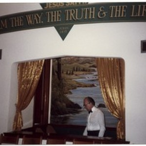 A photograph of a Pentecostal pastor Rade Jovković in the baptistery. [Description English/roman)] Fotografija pentekostalnog pastora Rade Jovkovića u krstionici. [Description (original non-English/roman language/script)]