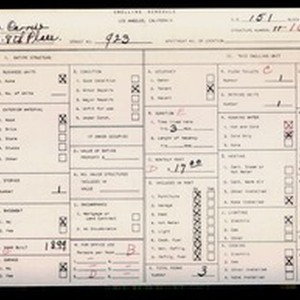 Text / WPA household census for 923 W 8 PL, Los Angeles