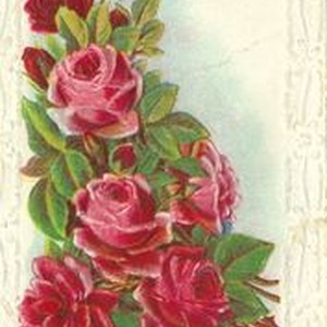 Postcard--colored picture: Picture of red roses surrounded by white lace. Handwritten message on back to Mary Guisler from Nita Postmarked 1913 with 1 cent postage stamp.