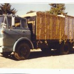 Photo--color: Morita apple Ranch in Sebastopol circa 1980. Truck loaded with filled apple boxes and ready for transport to markets in San Francisco and Oakland. Alice Kashiwagi is Kikue and Kichizo Morita's daughter.