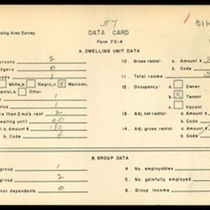 Text / WPA Low income housing area survey data card 57, serial 10044