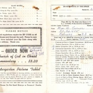 Order Form (M. Turner) requesting Sunday School Literature from D.J. Young Publishing Company, 1969 Oct. 3. [Description English/roman)]