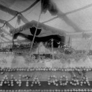 Photo--black and white, from Borba celluloid negative: Gravenstein Apple Show display by Santa Rosa is a miniature of an apple orchard.