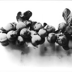 Photo--black and white: Branch of plums. Attached to bottom of photo is typed caption: "Sample branch of Luther Burbank plums, given the Laboratory number P-24; one of the 120 absolutely new varieties found by Stark Pomological Research Laboratories as part of Luther Burbank's bequest to the world after his death."