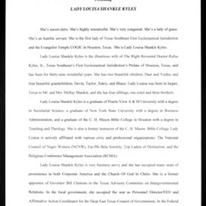 Lady Louisa Shankle Kyles, curriculum vitae, [s.d.]. [Description English/roman)]