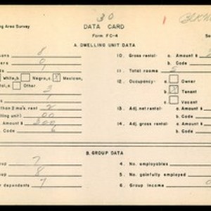 Text / WPA Low income housing area survey data card 30, serial 7356