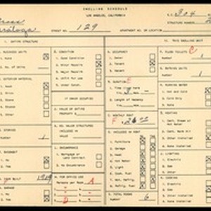 Text / WPA household census for 129 N SARATOGA, Los Angeles