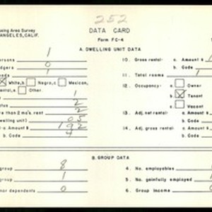 Text / WPA Low income housing area survey data card 252, serial 23357