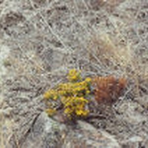 Bush of yellow flowers above Wilson Cove on San Clemente Island.