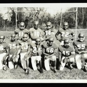 Eagles football team, Saints Industrial College, Lexington, Mississippi, 1963. "Willie Walton was the coach" -- back. [Description English/roman)]
