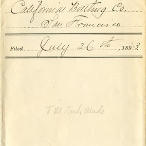 There are no known copyright restrictions associated with these digital images. We encourage the use of these images for personal, study, and educational purposes. Please credit “Courtesy of California State Archives.” The California State Archives and the Friends of California Archives cannot be responsible for any use of these images, or any liability resulting from their use. The Archives is interested in learning about any possible copyright restrictions and will gladly remove any image that is in violation.