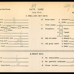 Text / WPA Low income housing area survey data card 39, serial 8058