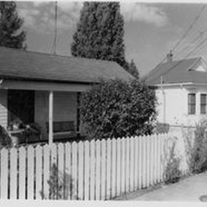 Photo, black and white: Sebastopol houses at 544 and 554 Petaluma Avenue. 544 is a Queen Anne built in 1900 and 554 is a cottage both in the Pitt Addition. House photographed in 1993 by Evelyn McClure for her book "Sebastopol, California : History, Homes and People."
