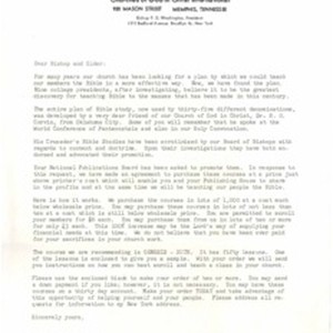 F. D. Washington, letter, ca. 1959, to elders of Church of God in Christ regarding Bible Study literature. [Description English/roman)]