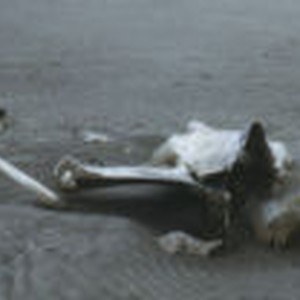 Whale skull bones lying in the sand at the beach near Scammon's Lagoon.