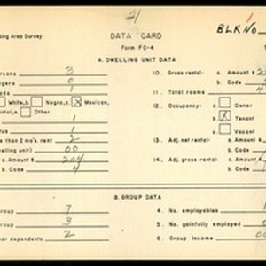 Text / WPA Low income housing area survey data card 21, serial 12212