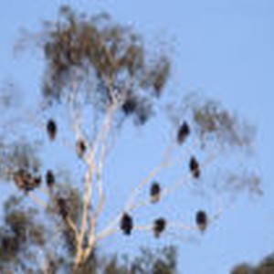 A group of vultures roosting in a tree in Los Serranos.