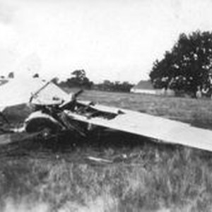 Photo--Black and white: Airplane crash at Cenopius Field, late 1920s.