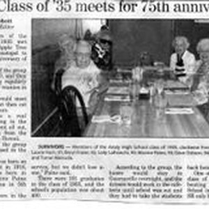 Photo--black and white: The Analy Class of 1935 75th reunion in June, 2010. Pictures clockwise: Fred Bollinger, Laurie Horn, Beryl Frazer, Sally LaFranchi, Maxine Paine and Dave Osborn. Not pictured: Jack Fore and Tomei Matsuda.