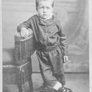 Photo--black and white, carte-de-visite: Unidentified young boy, about 4 years old standing with legs crossed next to a Victorian chair in a studio photo. Circa 1860s. Photograph by T. L. Rea & Co. Santa Rosa, CA.