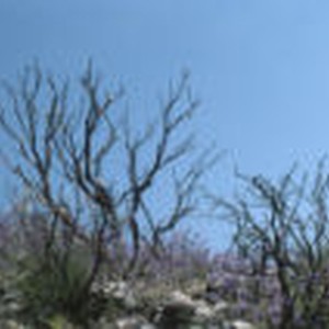 Various plants six and a half months after a fire in Cow Canyon Saddle.