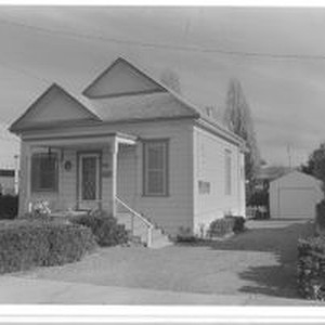 Photo, black and white: Sebastopol house at 733 Litchfield Avenue a Queen Anne cottage built in 1895 in the Wightman Addition. House photographed in 1993 by Evelyn McClure for her book "Sebastopol, California : History, Homes and People."