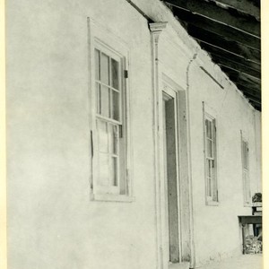 Adobe, Santa Barbara: door, 3 windows along porch.