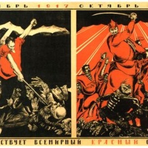 A poster dedicated to the third anniversary of the October revolution in Russia. Captions read, "Da zdravstvuet vsemirnyi krasnyi oktiabr'. Oktiabr' 1917 -- oktiabr' 1920 / Да здравствует всемирный красный октябрь. Октябрь 1917 -- октябрь 1920". meaning, "Long live the world-wide red October. October 1917 -- October 1920". [Description English/roman)]