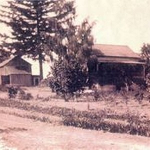 Photo--sepia: Gold Ridge Experiment Farm cottage and barn in Sebastopol. Luther Burbank used this 15 acre property to experiment with fruits and plants during his long career.