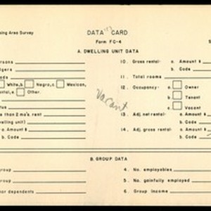WPA Low income housing area survey data card 157, serial 19747, vacant