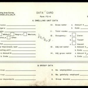 WPA Low income housing area survey data card 133, serial 19726, vacant
