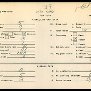 Text / WPA Low income housing area survey data card 39, serial 10633