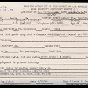 WPA Household Census cards and employee records, Los Angeles, 1939