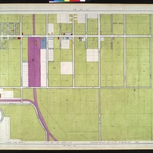 WPA Land use survey map for the City of Los Angeles, book 1 (North Los Angeles District), sheet 26. Includes: [Title page and] legend [for Book] no. I Composite index to Land use map books [for Book 1] Index to Book no. 1. Land use survey - City of Los Angeles. Department of City Planning. These maps were prepared with the assistance of the Works Progress Administration project no. 665-07-G-226 through 1939 to 1940. The land use data contained herein was compiled from a survey made with the assistance of the Civil Works Administration project no. 642, State Emergency Relief Administration project nos. 1-F2-318 and 1-F2-318A and Works Progress Administration project nos. 65-3-4377, 1101-2011 and 465-03-3-106. This survey functioned from Dec. 18, 1933 to May 8, 1939 and covers approximately 460 square miles within the boundary of the City of Los Angeles. It includes 347 colored drawings bound in 10 volumes of which this is no. I. The land use survey was supervised by the Zoning Engineer. The land use maps were supervised by the Illustrative Planning Engineer for the Sponsoring Department.