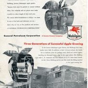 Photo--black and white: California Farm Bureau Monthly, January, 1948 advertisement for Mobilgas with biography of Oscar A. Hallberg & Sons business. Top photo L-R: Bob Hallberg, C.D. Anderson and Pete Barbieri of General Petroleum's Santa Rosa branc