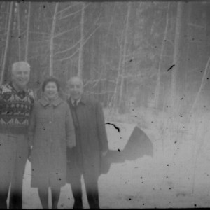 Leon and Alice Peters with unidentified man (Peters relative?) standing in the snow