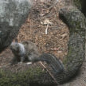 A squirrel sitting at the foot of a tree along Vernal Falls Trail.