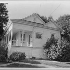 Photo, black and white: Sebastopol house at 588 North Main Street a Queen Anne cottage built in 1905. House photographed in 1993 by Evelyn McClure for her book "Sebastopol, California : History, Homes and People."