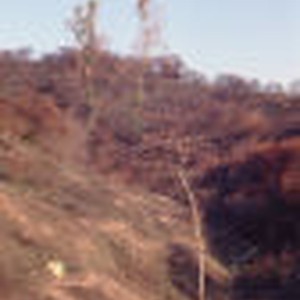 Sprouting trees on a hill in Sycamore Canyon ten weeks after fire.