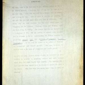 Triad convention & holy convocation, Women's Department, Church of God in Christ, John Wesley Wilson Institute, South Carolina, 1989?, paper (from USC Relious Studies) and handwritten notes from the three-day institute. [Description English/roman)]