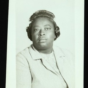 Photograph of Bertha Brown, San Antonio, Texas, September? 1967. "Cartwright Photos, H.L. Green Co., San Antonio, your negatives is on file, Sep 1967, 301 Alamo Plaza" -- stamped on back. [Description English/roman)]