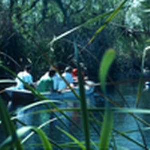 Students in a boat at pHake Lake.